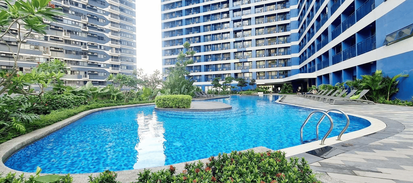 ✔ 59-storey all-concrete tower with modern interiors ✔ Two-level amenity deck: lap pool, kiddie pool, yoga lawn, jogging trail, game alley, barbecue terrace ✔ 24/7 security, CCTV, front desk, and property management services ✔ Air Mall at ground floor for shopping & convenience